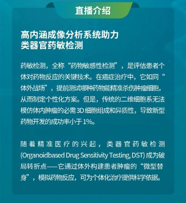 MD直播預(yù)告:高內(nèi)涵成像分析系統(tǒng)助力類器官藥敏檢測(cè)