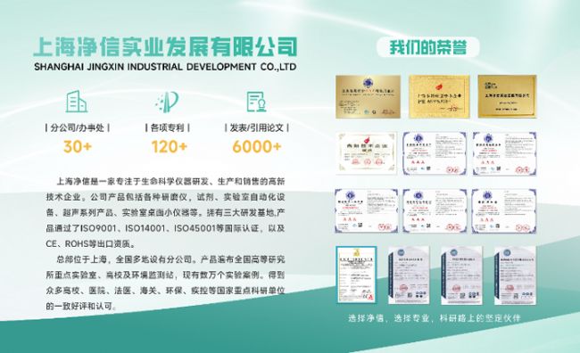 上海凈信是一家專業(yè)從事生命科學(xué)儀器、實(shí)驗(yàn)室自動(dòng)化設(shè)備的研發(fā)、生產(chǎn)、銷售為一體的國(guó)家高新技術(shù)企業(yè)。十幾年來凈信掌握自主核心技術(shù),專注于研發(fā)、生產(chǎn)樣品前處理系統(tǒng)等生命科學(xué)儀器。