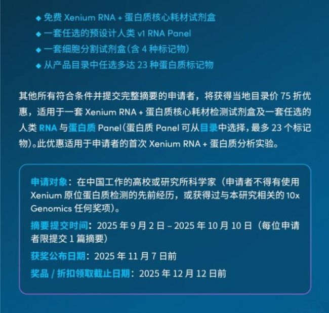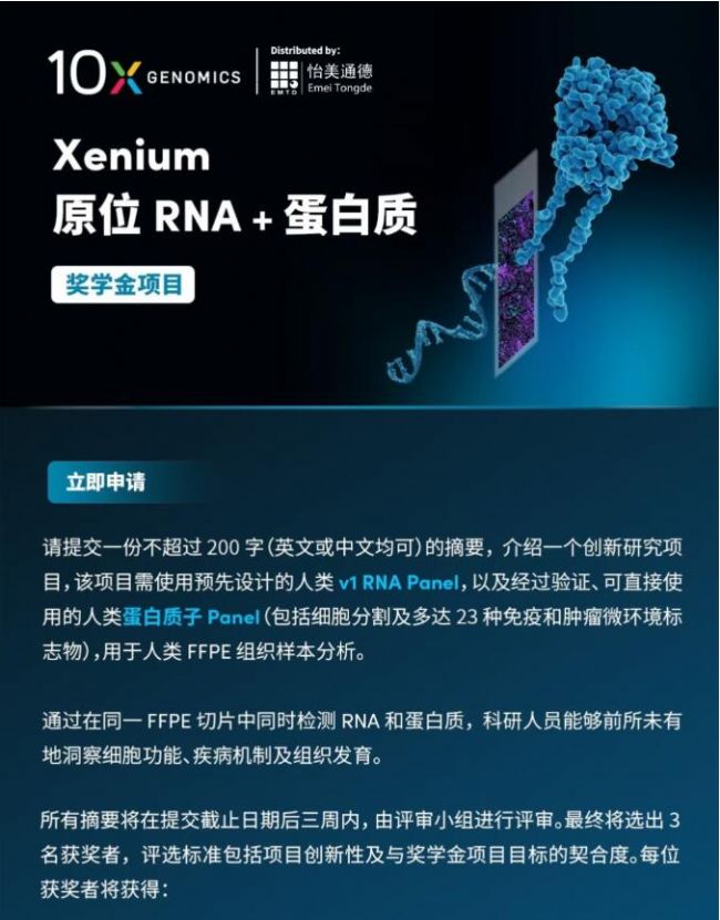 10x Xenium原位RNA+蛋白質(zhì)獎學(xué)金項(xiàng)目邀您申請