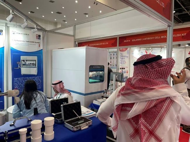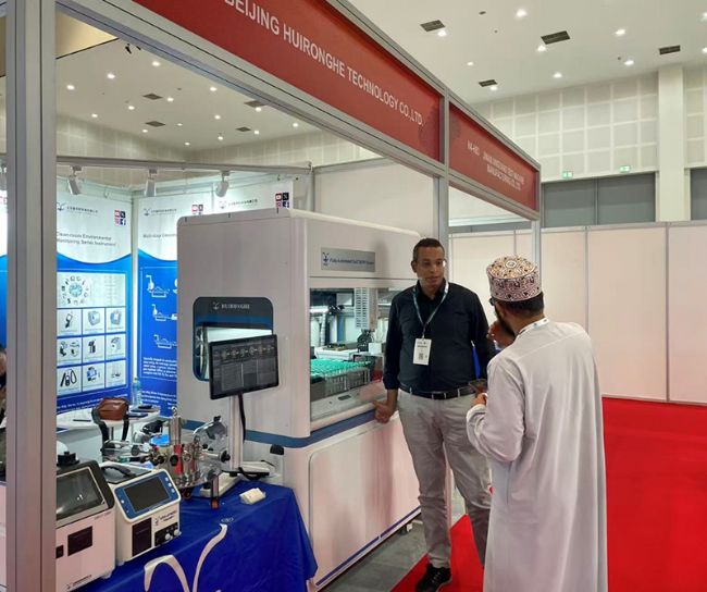 當(dāng)前中東地區(qū)實(shí)驗(yàn)室數(shù)智化市場(chǎng)正處于快速增長(zhǎng)期,沙特 “2030 愿景” 等區(qū)域戰(zhàn)略為自動(dòng)化設(shè)備帶來(lái)巨大增量空間。作為國(guó)家級(jí)高新技術(shù)企業(yè)與中國(guó)制造冠軍企業(yè),慧榮和此次參展精準(zhǔn)錨定中東市場(chǎng)需求爆發(fā)點(diǎn),攜全自動(dòng) QuEChERS 實(shí)驗(yàn)儀、氣溶膠光度計(jì)、干霧過(guò)氧化氫消毒機(jī)、新一代藥用圓盤(pán)撞擊器、潔凈室環(huán)境監(jiān)測(cè)等多款明星設(shè)備再度參展,展現(xiàn)公司在實(shí)驗(yàn)室設(shè)備領(lǐng)域的開(kāi)拓創(chuàng)新實(shí)力。曾獲美國(guó)專(zhuān)利授權(quán)的全自動(dòng) QuEChERS 實(shí)驗(yàn)儀,一度成為展會(huì)現(xiàn)場(chǎng)焦點(diǎn)。工作人員現(xiàn)場(chǎng)開(kāi)機(jī)演示,設(shè)備僅需簡(jiǎn)單設(shè)置操作即可完成傳統(tǒng)數(shù)小時(shí)的人工實(shí)驗(yàn),吸引了來(lái)自沙特、阿聯(lián)酋、埃及等國(guó)的食品檢測(cè)機(jī)構(gòu)駐足洽談,收獲多家經(jīng)銷(xiāo)商的合作意向,部分已達(dá)成初步合作共識(shí)。