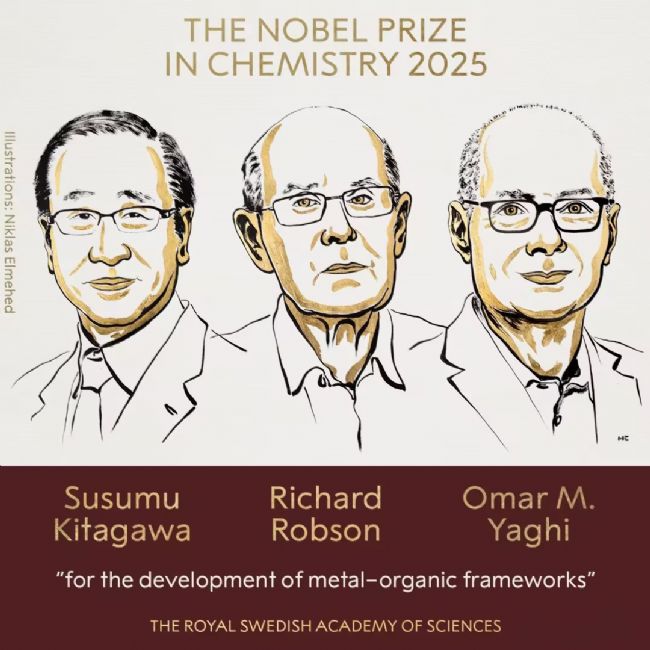 2025年諾貝爾化學(xué)獎(jiǎng)于10月8日正式揭曉,北川進(jìn)(Susumu Kitagawa)、理查德·羅布森(Richard Robson)與奧馬爾·M·亞吉(Omar M. Yaghi)三位科學(xué)家因共同開創(chuàng)[金屬有機(jī)框架](Metal-Organic Frameworks, MOFs)的新型分子結(jié)構(gòu)而獲獎(jiǎng)。