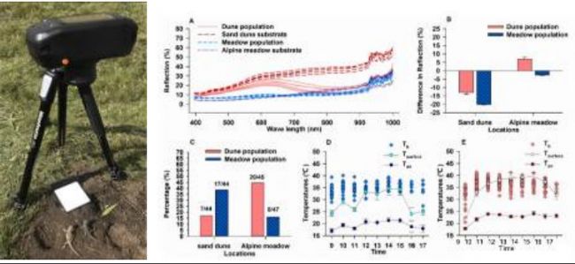 易科泰多功能高光譜成像技術(shù)在實(shí)驗(yàn)動(dòng)物活體熒光成像和反射光成像等領(lǐng)域應(yīng)用廣泛。上圖為高光譜成像技術(shù)在蜥蜴體色適應(yīng)性進(jìn)化研究的應(yīng)用:該成果以青藏高原分布的貴德沙蜥(Phrynocephalus putjatai)物種為研究對(duì)象,綜合野外生態(tài)實(shí)驗(yàn)、基因組測(cè)序和遺傳驗(yàn)證等手段,論證了貴德沙蜥體色本地適應(yīng)的驅(qū)動(dòng)力和分子機(jī)制。另外,高光譜成像應(yīng)用于人體皮膚、組織切片樣品等方面也有巨大潛力。