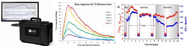 國(guó)際知名動(dòng)物能量代謝技術(shù)公司Sable Systems International 推出CO2穩(wěn)定同位素分析,用于動(dòng)物穩(wěn)定同位素呼吸檢測(cè)(The combined use of respirometry and stable-isotope tracer techniques),一個(gè)分析儀可以匹配8通道能量代謝系統(tǒng),可測(cè)量分析外源性與內(nèi)源性營(yíng)養(yǎng)物(如蛋白質(zhì)、脂肪等)氧化等。