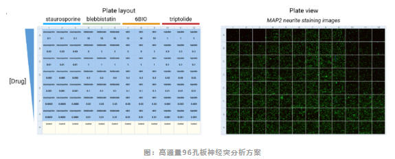 圖:基于免疫熒光染色的神經(jīng)突生長高通量分析方案流程