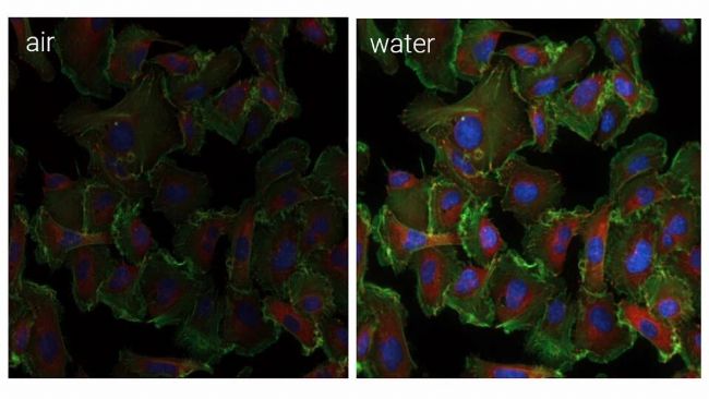 在光學(xué)顯微鏡中,水鏡技術(shù)是在物鏡和樣本之間自動(dòng)注水并形成穩(wěn)定持續(xù)的水層。與空氣相比,水的折射率更高,能夠有效地增加物鏡的數(shù)值孔徑,提高 Z 軸分辨率,從而獲得更高的圖像質(zhì)量和更真實(shí)的細(xì)胞和組織三維模型。水鏡技術(shù)還可減少曝光時(shí)間,從而降低傳統(tǒng)方法在這些實(shí)驗(yàn)中通常會(huì)產(chǎn)生的光毒性作用,幫助越來(lái)越多的研究人員得以開展能直接反映生理生化水平變化的活細(xì)胞實(shí)驗(yàn),此類實(shí)驗(yàn)與固定細(xì)胞實(shí)驗(yàn)大為不同。