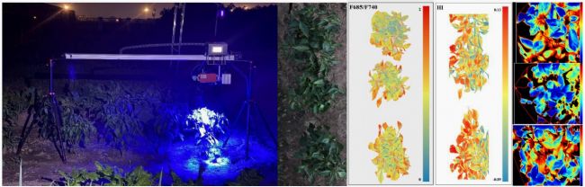 ®輕便型近地遙感系統(tǒng)夜間工作圖、辣椒植株RGB成像圖、葉綠素?zé)晒鈪?shù)F685/F740、健康指數(shù)HI、紅外熱成像