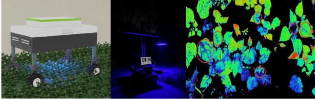 ®葉綠素?zé)晒獬上窦夹g(shù),可全自動(dòng)、非損傷、高通量、原位檢測(cè)植物形態(tài)、光合生理、脅迫與抗性、果實(shí)成熟度及損傷等指標(biāo),支持異地遠(yuǎn)程控制與實(shí)時(shí)回傳、全自動(dòng)航線規(guī)劃、全天候監(jiān)測(cè),可靈活擴(kuò)展多種傳感器;從左至右依次為:溫室中的FluorTron