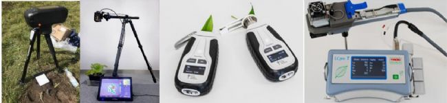 從左至右依次是:IQ手持式高光譜成像儀;Thermo-RGB便攜型系統(tǒng);FluorPen手持式葉綠素?zé)晒鈨x;LCpro T全自動(dòng)便攜式光合儀