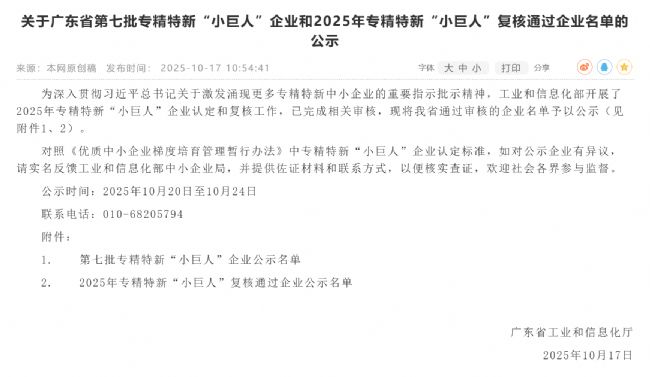 10月17日,廣東省工業(yè)和信息化廳權(quán)威發(fā)布新一批國家級(jí)專精特新“小巨人”企業(yè)名單,廣州博鷺騰生物科技有限公司憑借其在生命科學(xué)領(lǐng)域的深厚積累與硬核實(shí)力,成功躋身國家級(jí)“小巨人”企業(yè)行列。