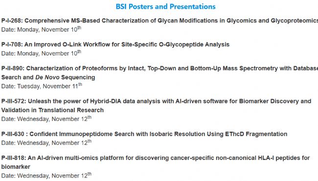 在此誠邀各位老師前來我們的展位與BSI團隊進行現(xiàn)場互動,了解BSI旗下的PEAKS Online、PEAKS GlycanFinder及PEAKS Studio軟件平臺的最新更新。我們將展示全新功能,旨在讓分析過程比以往更快、更直觀、更強大。