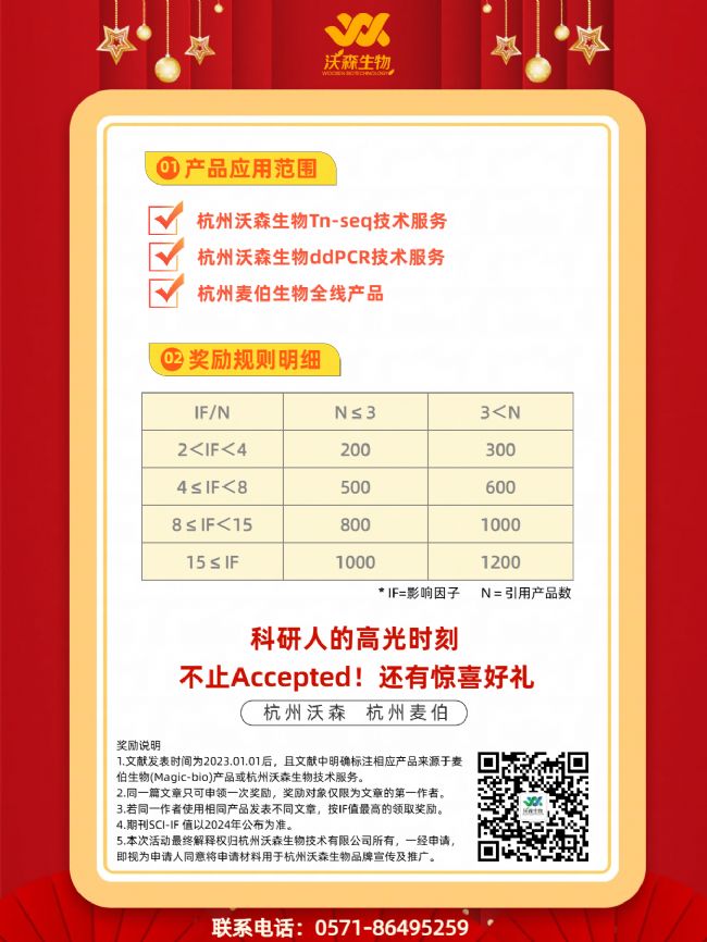 杭州沃森生物深知,每一篇高水平學(xué)術(shù)論文的背后,都凝聚著無數(shù)的智慧與汗水,也離不開穩(wěn)定、可靠、前沿的技術(shù)服務(wù)支持。我們很榮幸,能作為您科研路上的“助力者”,以我們的數(shù)字PCR技術(shù)與Tn-seq測序服務(wù),為您的重要發(fā)現(xiàn)貢獻(xiàn)一份力量。