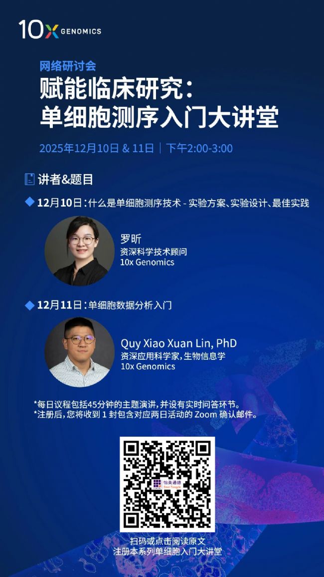 10x網(wǎng)絡(luò)研討會(huì):賦能臨床研究,單細(xì)胞測(cè)序入門大講堂