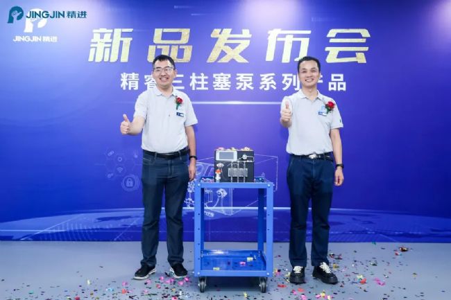 本次精進(jìn)科技五周年慶典上,精進(jìn)科技董事長孔桂昌先生、副總經(jīng)理張思相先生與大家一同見證了精睿三柱塞泵新品揭幕。精睿三柱塞泵系列產(chǎn)品是精進(jìn)科技花了2年多的時間用全新技術(shù)路線打造的一款產(chǎn)品。該款產(chǎn)品在經(jīng)過諸多客戶的使用驗(yàn)證后,性能指標(biāo)達(dá)到預(yù)期,在2023年6月初正式推向市場。