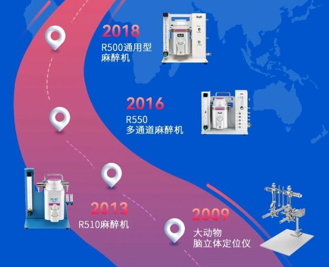2007至2019年間,瑞沃德相繼推出輕便型、滑軌型、MRI型及大動物型定位儀以滿足多種實驗場景。