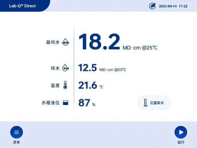 Lab-Q®Direct以城市自來水為水源,制備穩(wěn)定的純水和超純水,主機(jī)至少具備中、英、德三語種操作系統(tǒng),用戶可自行選擇,滿足用戶多樣化的應(yīng)用要求。