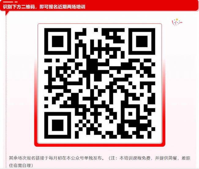 *具體時(shí)間和地點(diǎn)以本公眾號(hào)后續(xù)推送的每場(chǎng)培訓(xùn)邀請(qǐng)信息為準(zhǔn)