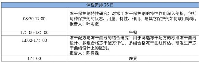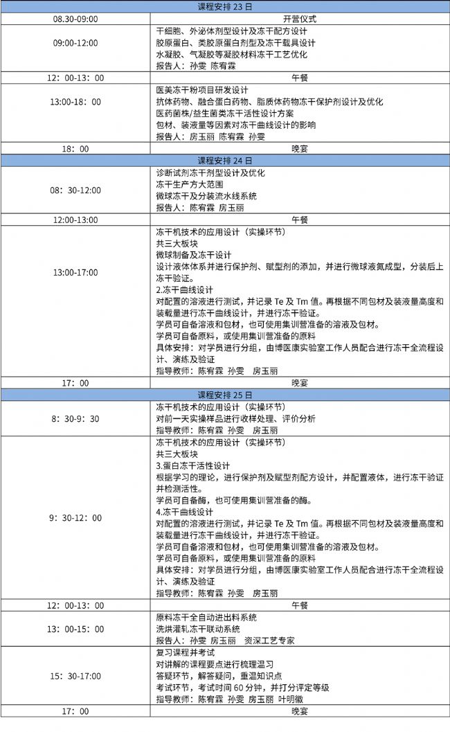 時(shí)間:23、24、25日為凍干技術(shù)進(jìn)階培訓(xùn)班,含凍干樣品實(shí)操課程;26日為專家精品班。