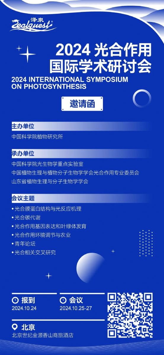光合作用是地球上最重要的化學反應,與農(nóng)業(yè)、能源、環(huán)境等問題息息相關,為推動我國光合作用研究的科技進步,加強該領域國際合作與交流,給科研人員提供一個面向國際展示最新成果、激發(fā)和交流思想、探索未來合作的平臺。“2024光合作用國際研討會”將于10月24日- 27日在北京舉辦。上海澤泉科技股份有限公司應邀參加并設立站展臺,現(xiàn)場為各位參會老師介紹最新的光合作用研究技術,期待各位老師蒞臨指導,交流。