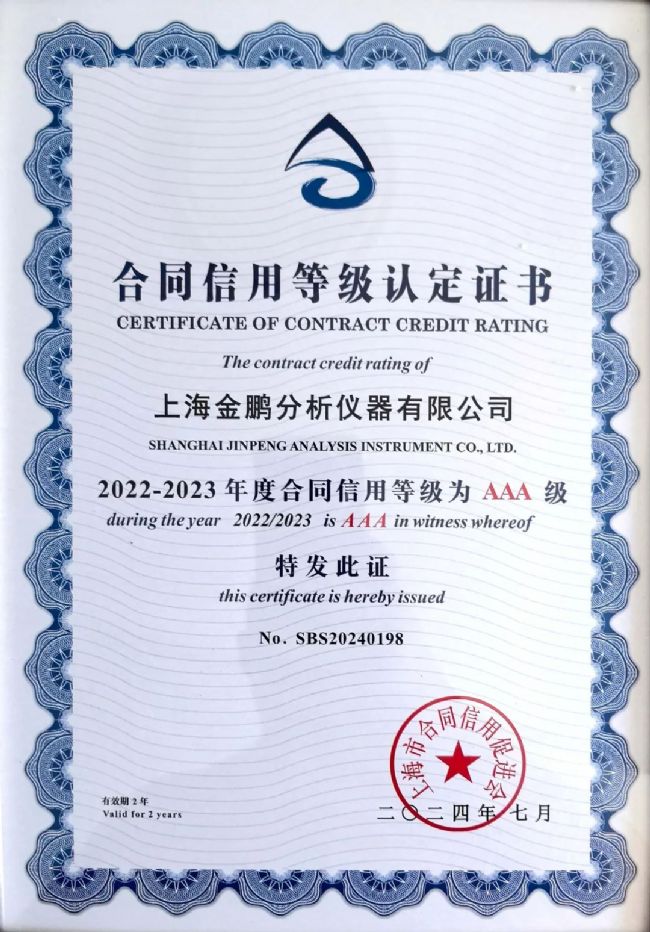 根據(jù)上海市合同信用促進會(滬合促〔2024〕1號文)和《上海市企業(yè)合同信用評價與等級認定辦法》的相關規(guī)定,2022—2023年度上海市企業(yè)合同信用等級評估認定和“上海市守合同重信用企業(yè)”評審認定工作,上海金鵬分析儀器有限公司成功完成申報,獲評“上海市守合同重信用企業(yè)”。