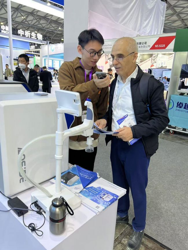 位于N5館5130號的奧思德儀器展位,那充滿科技藍的色彩格外引人注目,半月型的藍波頂,水滴狀的LOGO牌,以及展柜上碩氣的實驗室超純水機,吸引了眾多海內外行業(yè)專家、用戶駐足參觀與交流。