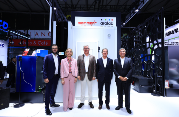 analyticaChina首日,在眾多合作伙伴的見證下,美墨爾特攜手戰(zhàn)略合作伙伴艾瑞萊博Aralab)一同為新產(chǎn)品——步入式環(huán)境模擬試驗室揭幕。為現(xiàn)場觀眾揭開了聯(lián)合品牌新品的神秘面紗。