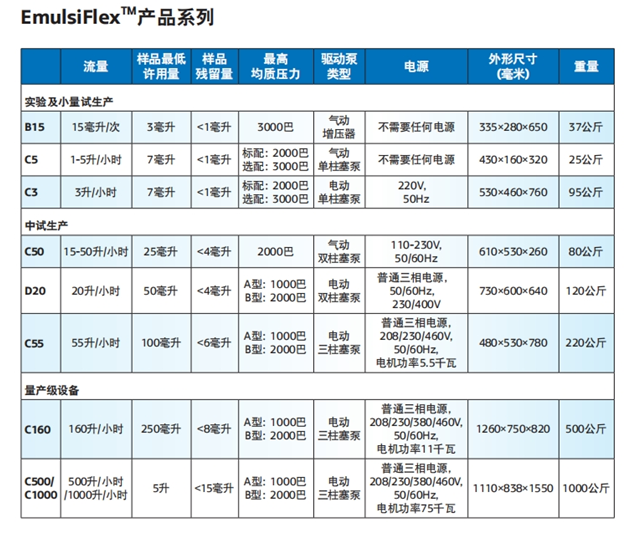 品,其分散相粒徑可降低至50納米以下,并可取得極窄的粒徑分布。