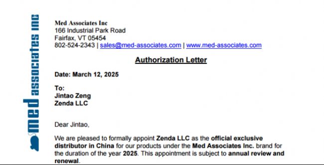 2025年5月1日,上海贊德醫(yī)療器械有限公司與美國med associates公司達(dá)成協(xié)議,上海贊德正式成為Med associates中國獨(dú)家代理。