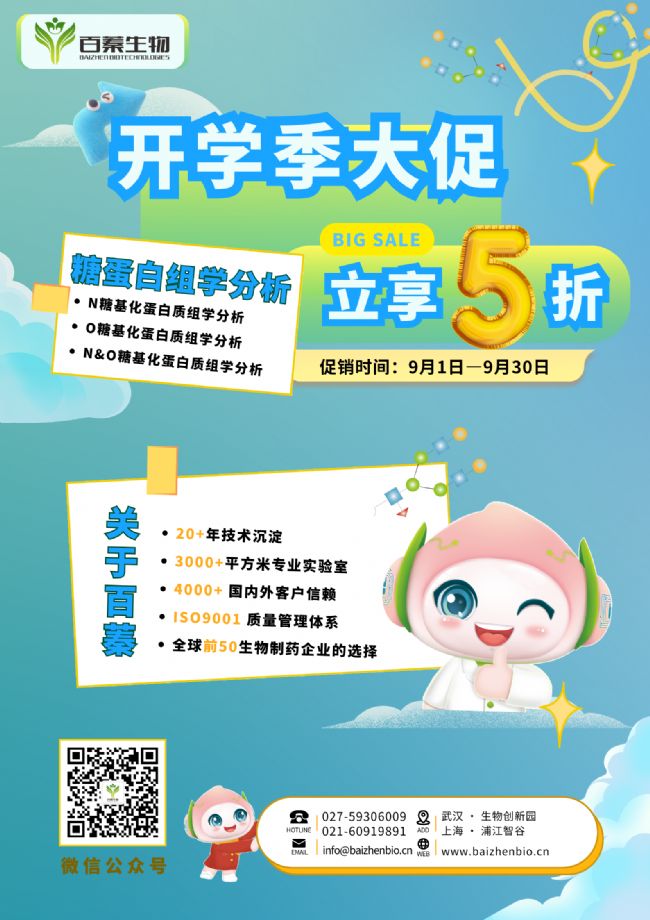 百蓁生物開學(xué)季大促:糖蛋白組學(xué)分析限時(shí)5折優(yōu)惠