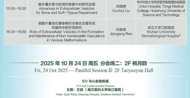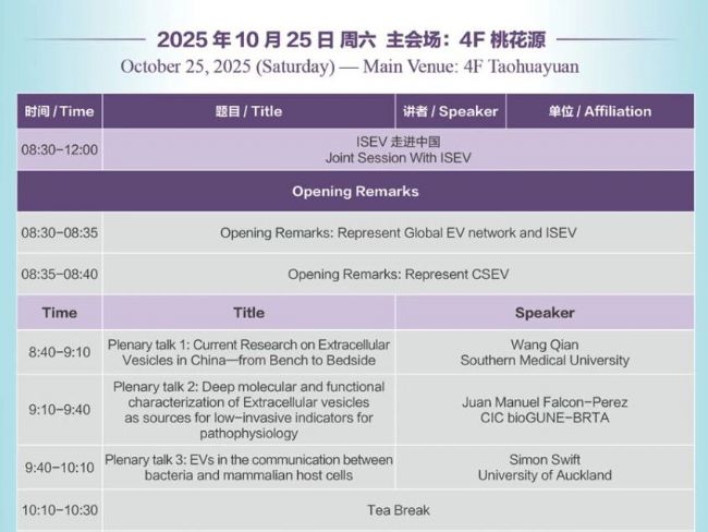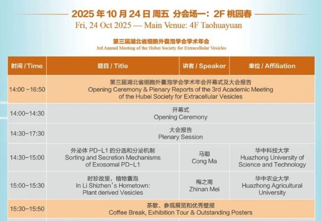 2025年CSEV第九屆全國(guó)細(xì)胞外囊泡大會(huì)將于10月24-26日在武漢市桃花嶺大酒店舉辦。此次會(huì)議由中國(guó)研究型醫(yī)院學(xué)會(huì)細(xì)胞外囊泡研究與應(yīng)用專業(yè)委員會(huì)(CSEV)、Interdisciplinary MEDICINE期刊、湖北省細(xì)胞外囊泡學(xué)會(huì)及廣東省精準(zhǔn)醫(yī)學(xué)應(yīng)用學(xué)會(huì)細(xì)胞外囊泡分會(huì)聯(lián)合主辦,由南方醫(yī)科大學(xué)南方醫(yī)院、南方醫(yī)科大學(xué)珠江醫(yī)院及武漢大學(xué)口腔醫(yī)院聯(lián)合承辦。