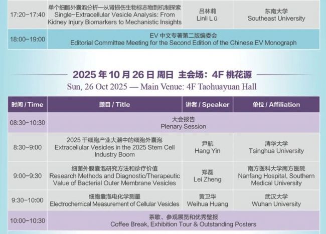 本次會(huì)議將延續(xù)精品辦會(huì)的理念,以“交叉融合、啟迪創(chuàng)新”為主題,邀請(qǐng)國(guó)際細(xì)胞外囊泡學(xué)會(huì)(ISEV)以及國(guó)內(nèi)本領(lǐng)域杰出專家就細(xì)胞外囊泡研究的最新成果、研究趨勢(shì)以及面臨的問(wèn)題展開報(bào)告以及征文交流,并邀請(qǐng)行業(yè)專家及相關(guān)企業(yè)對(duì)細(xì)胞外囊泡研究產(chǎn)業(yè)轉(zhuǎn)化的前景及關(guān)鍵問(wèn)題進(jìn)行探討。會(huì)議內(nèi)容主要包含細(xì)胞外囊泡形成分泌機(jī)制,細(xì)胞外囊泡分離、檢測(cè)、組學(xué)分析及工程化新技術(shù)研究與臨床應(yīng)用,細(xì)胞外囊泡在癌癥、神經(jīng)系統(tǒng)疾病、心血管疾病、免疫及感染性等重大疾病診斷與治療中的研究與臨床應(yīng)用,微生物、尿液、中草藥、干細(xì)胞等各類細(xì)胞外囊泡前沿研究與應(yīng)用等。