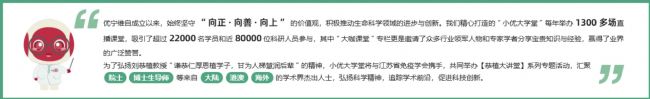 別忘了,「恭植大講堂」背后,還有小優(yōu)大學(xué)堂的強(qiáng)力支撐 —— 每年 1300 + 場(chǎng)直播、22000 + 學(xué)員、80000 + 科研人員信任的學(xué)術(shù)平臺(tái),品質(zhì)絕對(duì)有保障!
