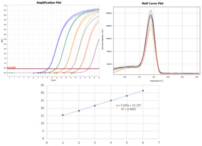 用cDNA按5的倍數(shù)稀釋5個梯度,用Magic qPCR Master Mix (Probe)進(jìn)行擴(kuò)增分析