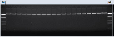 基因組DNA的分離及其后續(xù)分析顯示可重復(fù)性、產(chǎn)量、完整度和純度都很高。根據(jù)瓊脂糖凝膠分析,DNA片段平均顯著大于20 kb(圖2)。