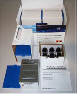 MagNA Pure 96 DNA和病毒核酸試劑盒大容量規(guī)格用于從500μl或1000μl全血或從106個(gè)培養(yǎng)細(xì)胞中分離基因組DNA。 它能從500μl血漿、血清或全血,