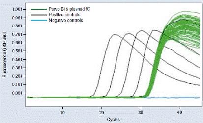 圖5: 內(nèi)部質(zhì)控品。 從所處理樣品盒的所有96個孔中分離出的細小病毒B19內(nèi)部質(zhì)控品的PCR分析。