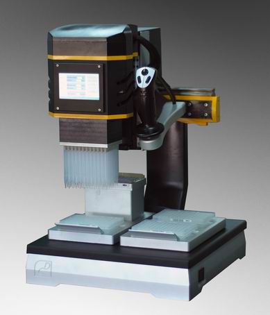 7. 小心取出96 孔板, 放置在 96 道移液移液槍的平臺(tái)中。 調(diào)整好移移槍插入的深度, 吸取450ul上清液至新的96 孔反應(yīng)板中。(若沉淀較多,可只轉(zhuǎn)移 400ul)