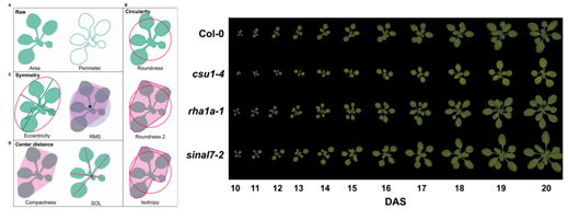 圖12. 擬南芥蓮座形態(tài)參數(shù)與生長(zhǎng)動(dòng)態(tài)