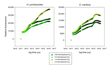 Duarte使用FytoScope模擬晝夜變化研究了C3植物Halimioneportulacoides和C4植物海岸米草Spartinamaritima在不同溶解CO2條件下的生理變化,探討鹽沼植物對(duì)氣候變化的響應(yīng)。一方面FytoScope可以調(diào)控溫度、光照及晝夜變化;另一方面FytoScope也能夠精確控制CO2濃度(Duarte,2014)。