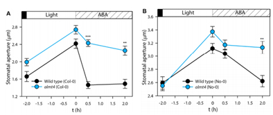 5. Eisenach C, et. al, 2017,ABA-Induced Stomatal Closure Involves ALMT4, a PhosphorylationDependent Vacuolar Anion Channel of Arabidopsis. Plant Cell, doi:10.1105/tpc.17.00452