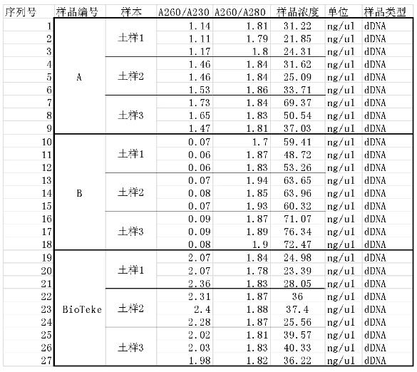 →提取土壤基因組DNA超微量分光光度計(jì)檢測(cè)結(jié)果: