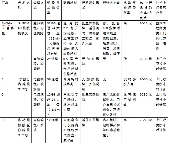 其實進(jìn)口核酸提取儀和國產(chǎn)比并沒有任何的優(yōu)勢,網(wǎng)上有個對比表,還比較客觀: