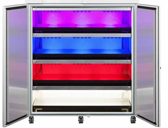 2、除了光照強(qiáng)度,光照類型也對試驗結(jié)果有了較大影響,隨著光照技術(shù)的發(fā)展,已經(jīng)不再滿足于熒光燈補(bǔ)光,LED照明的諸多優(yōu)勢逐漸顯現(xiàn),比如光照的周期變化模擬晝夜更替更加靈活;光照強(qiáng)度的調(diào)節(jié)變化更加精細(xì)。