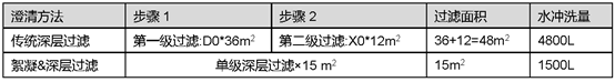 單級過濾即可有效降低濁度,減少深層過濾使用面積