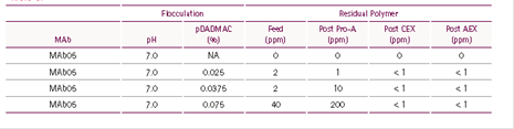 絮凝劑pDADMAC通過層析工藝后的殘留: