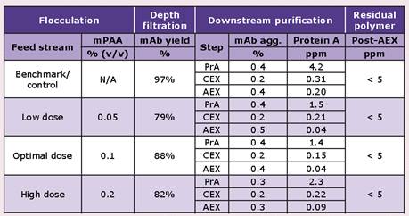 絮凝劑mPAA通過層析工藝后的殘留:
