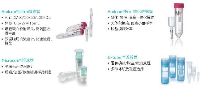 如果樣本體積較大需進(jìn)行濃縮,則需要選擇對蛋白吸附損失最低、回收效率最高的材料,比如以下Amicon系列濃縮管、超濾管。