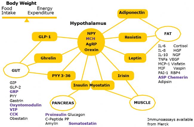 肥胖、糖尿病、心血管疾病以及其他代謝綜合征范疇內(nèi)的相關(guān)疾病,是關(guān)系到我們健康最緊迫的問題,其中代謝相關(guān)的激素由內(nèi)分泌系統(tǒng)的各個器官,包括脂肪細(xì)胞、胰腺和胃腸道分泌。在調(diào)節(jié)能量、食物攝取量和全身代謝方面發(fā)揮著重要作用。