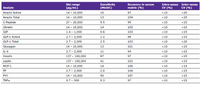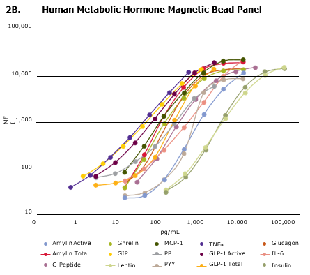 為了克服這些挑戰(zhàn),基于Luminex®xMAP®磁珠技術(shù)的MILLIPLEX®MAP多因子檢測試劑盒,可以實現(xiàn)同時定量代謝相關(guān)分析1。MILLIPLEX®代謝激素檢測試劑盒的主要優(yōu)勢是包含:總GLP-1的檢測和活性GLP-1的高靈敏度檢測。