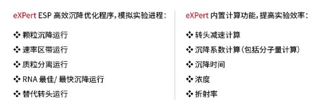 - 對(duì)于差速離心以及操作相對(duì)復(fù)雜的密度梯度離心方法,內(nèi)置的eXPert離心專(zhuān)家軟件可模擬不同實(shí)驗(yàn)進(jìn)程以及計(jì)算相應(yīng)實(shí)驗(yàn)參數(shù)計(jì)算,幫助用戶(hù)在病毒分離時(shí)設(shè)計(jì)實(shí)驗(yàn)與運(yùn)行,提高實(shí)驗(yàn)效率。