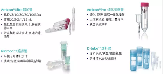 如果樣本體積較大需進行濃縮,則需要選擇對蛋白吸附損失最低、回收效率最高的材料,比如以下Amicon系列濃縮管、超濾管。